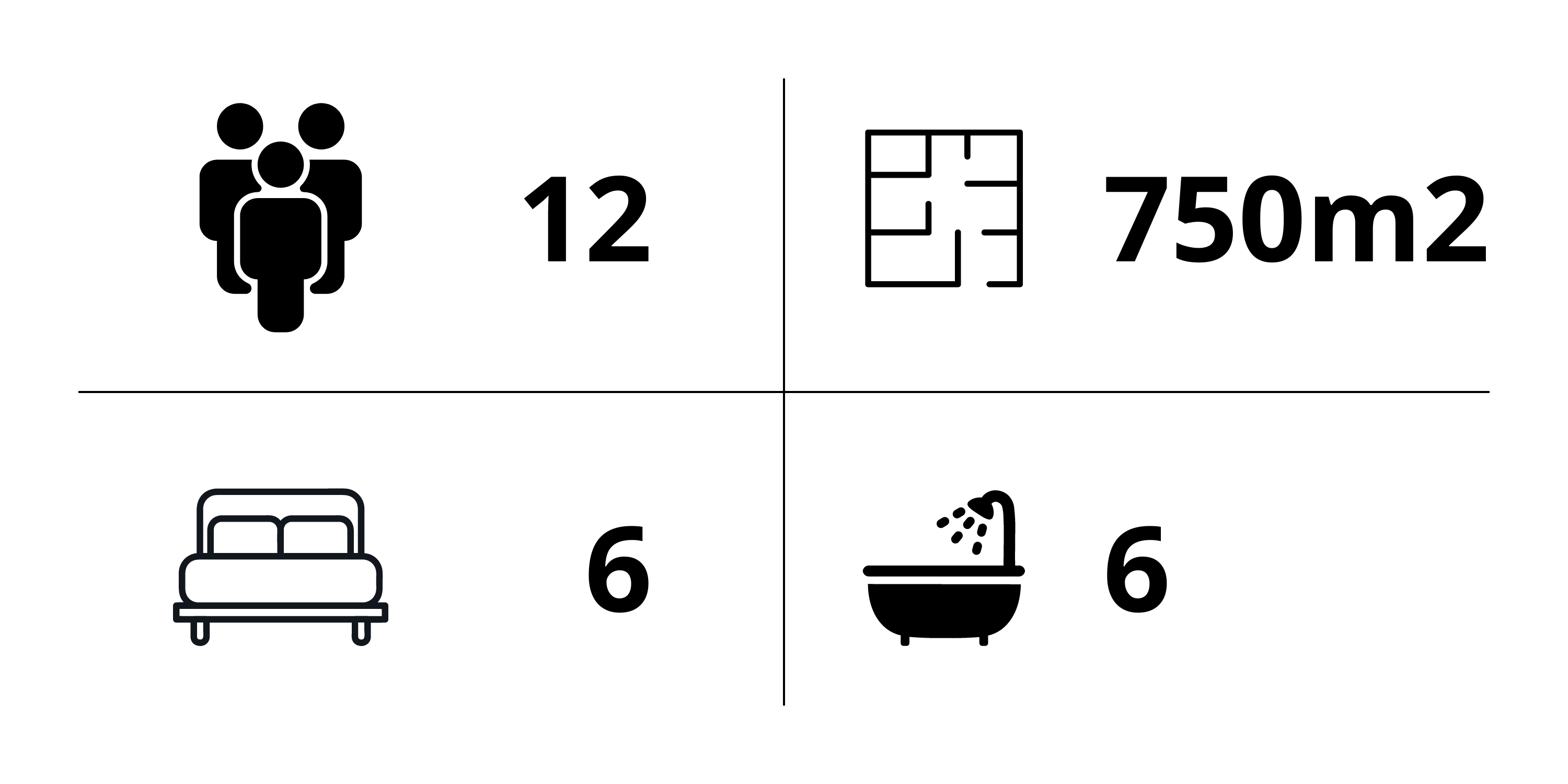 Avec environ 750m2 utiles, la villa offre 6 grandes chambres en suite, soit : la Master avec 2 salles de bain et un magnifique dressing, une seconde master avec son dressing et sa salle de bain, 2 chambres double, un bureau/chambre et un studio indépendant. La maison offre aussi un espace Wellness avec hammam, sauna, jaccuzzi et une salle de massage. Un grand home cinéma. Grande buanderie avec 2 lave-linges et 2 sèche-linges. Garage intérieur pour 4 voitures avec un chargeur rapide universel. Le Poolhouse est convertit en salle de gym entièrement équipée en Technogym et une salle de douche et WC. Le jardin offre une grande piscine extérieure chauffée.